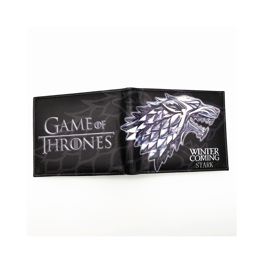 Peněženka Game of Thrones – Stark: Stylová černá peněženka s ikonickým znakem rodu Stark a nápisem "Winter is Coming". Vyrobena ze syntetické kůže, ideální pro fanoušky Hry o trůny.