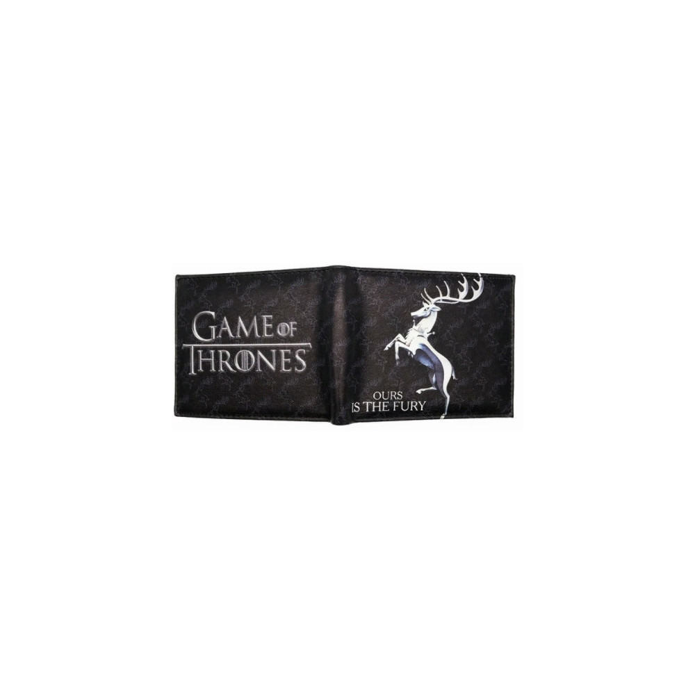 Peněženka Game of Thrones – Baratheon: Stylová černá peněženka s erbem stříbrného jelena a heslem „Ours Is The Fury“. Ideální dárek pro fanoušky rodu Baratheon a milovníky Hry o trůny. Vyrobena ze syntetické kůže.