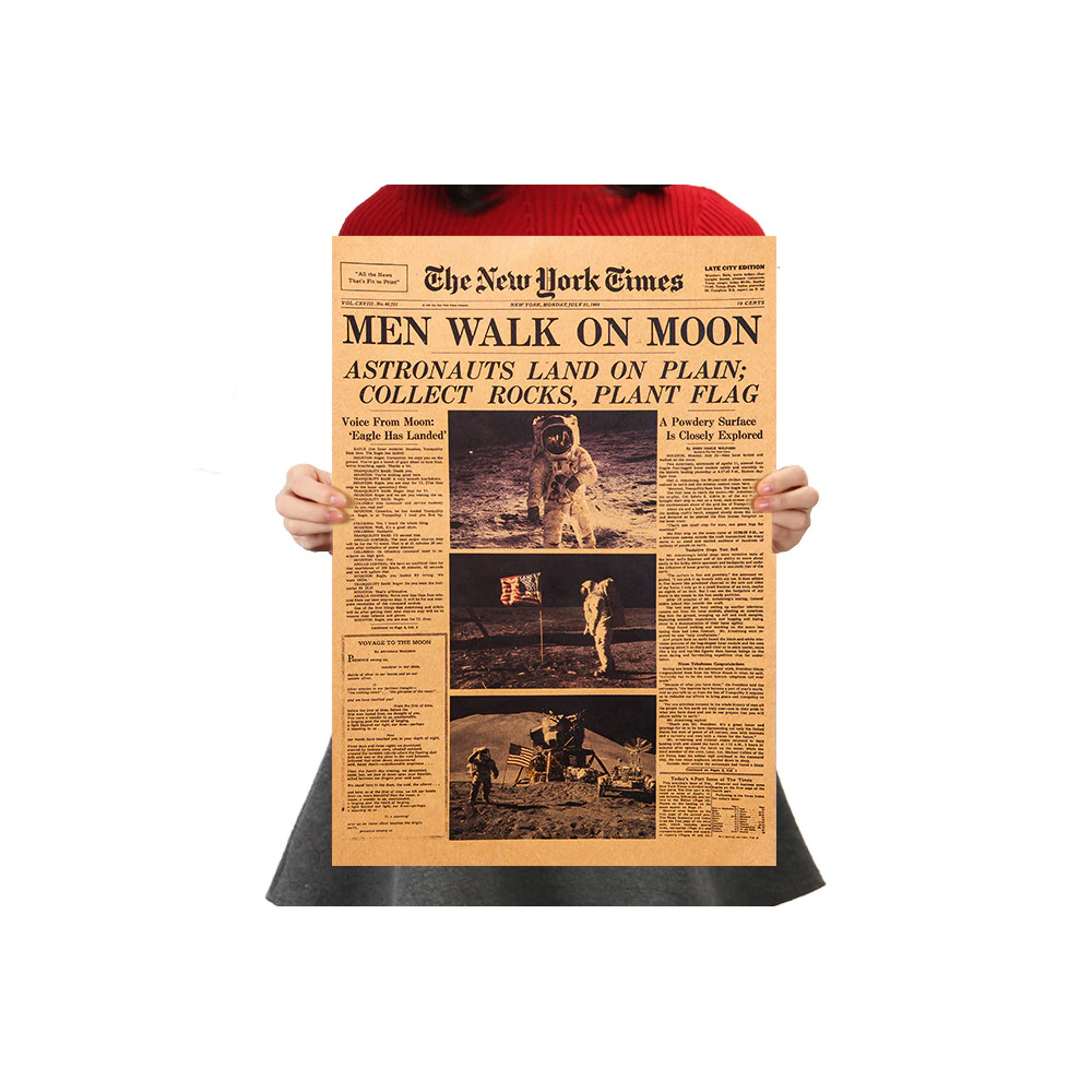 Připomeňte si jeden z největších milníků v historii lidstva s plakátem Muž na Měsíci v New York Times. Tato reprodukce slavné titulní strany z 21. července 1969 zachycuje okamžik, kdy astronauti z Apolla 11 vkročili na povrch Měsíce.