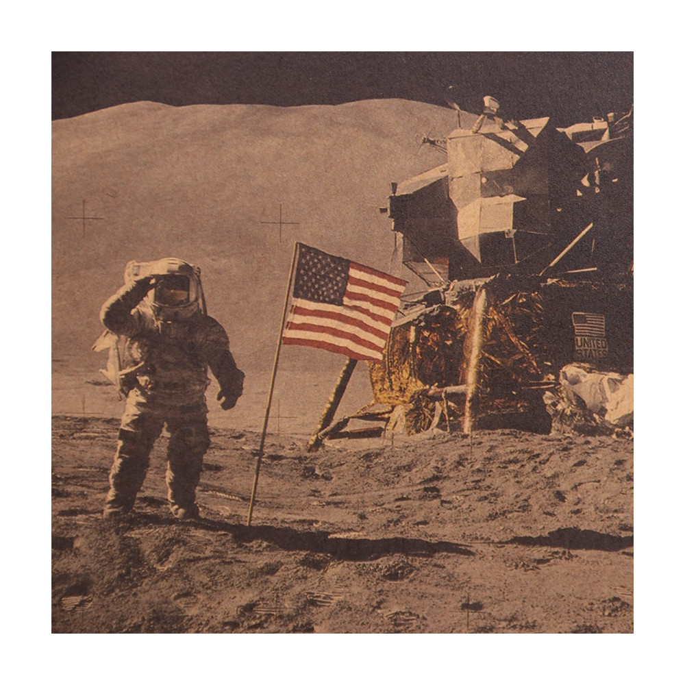 Tento plakát je ideálním dárkem pro každého, kdo obdivuje odvahu a technologický pokrok. Přeneste se zpět do roku 1969 a připomeňte si den, kdy se lidé poprvé dotkli Měsíce.
