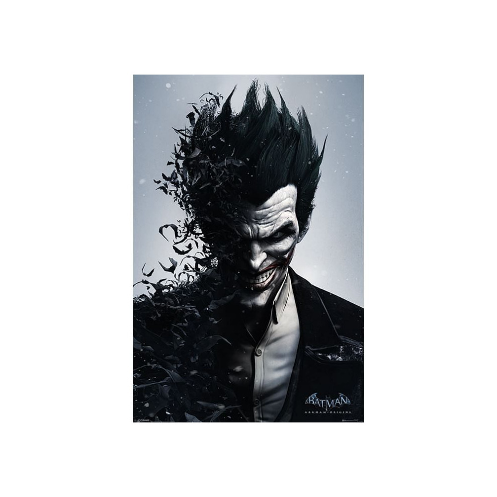 Plakát vychází z populární videohry Batman: Arkham Origins, kde Joker hraje klíčovou roli. Jeho zlověstný úsměv, stínové prvky a temná kompozice dělají z plakátu ideální dekoraci pro každého fanouška gothamského podsvětí.