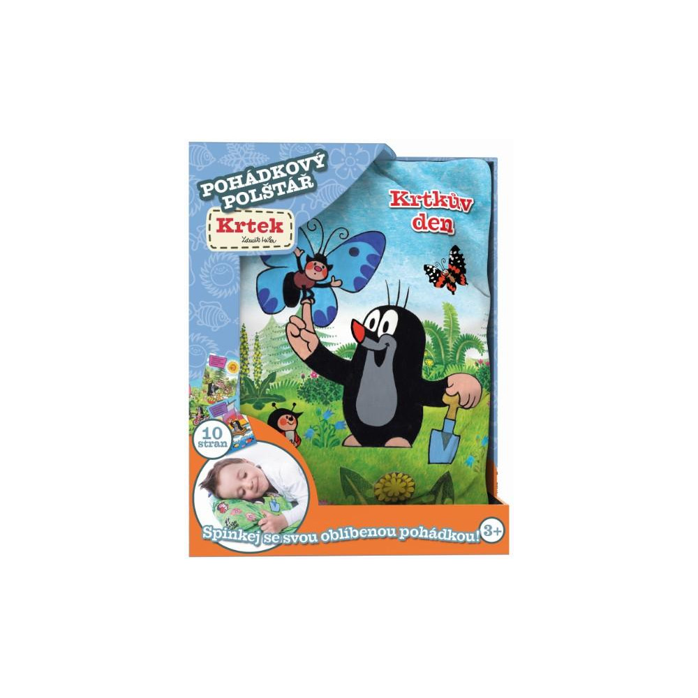 Spinkej se svou oblíbenou pohádkou! Pohádkový polštář obsahuje 10 textilních stran s motivy Krtka a dva suché zipy pro snadné otevírání a zavírání knihy.