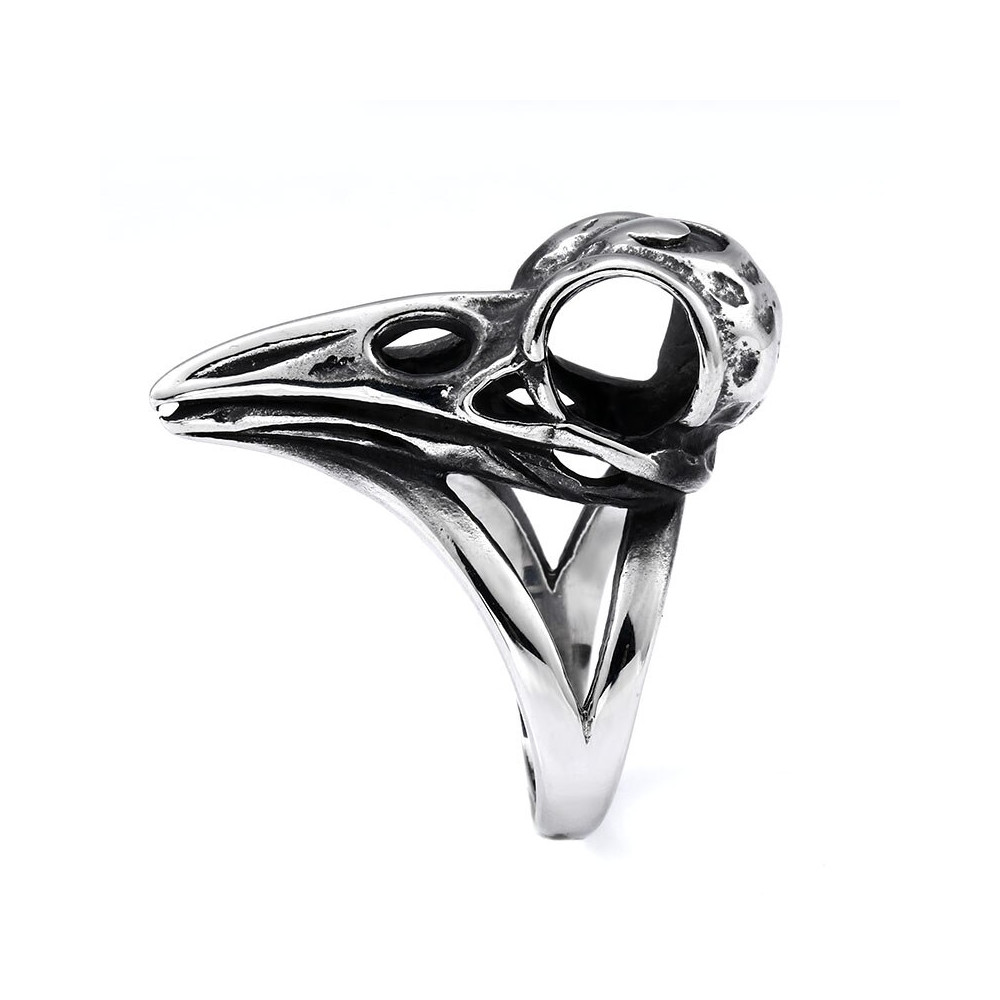 Unikátní prsten ve tvaru lebky vrány inspirovaný vikingskou symbolikou. Vyroben z chirurgické oceli, ideální pro milovníky severské mytologie a gothic stylu.