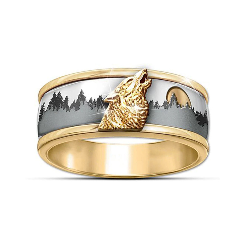 Středem tohoto unikátního prstenu je vyobrazení zlatého vlka, který vyje k měsíci na pozadí siluety hustého lesa. Elegantní kombinace stříbrného podkladu a zlatých prvků vytváří silný kontrast, který vynikne na každé ruce.