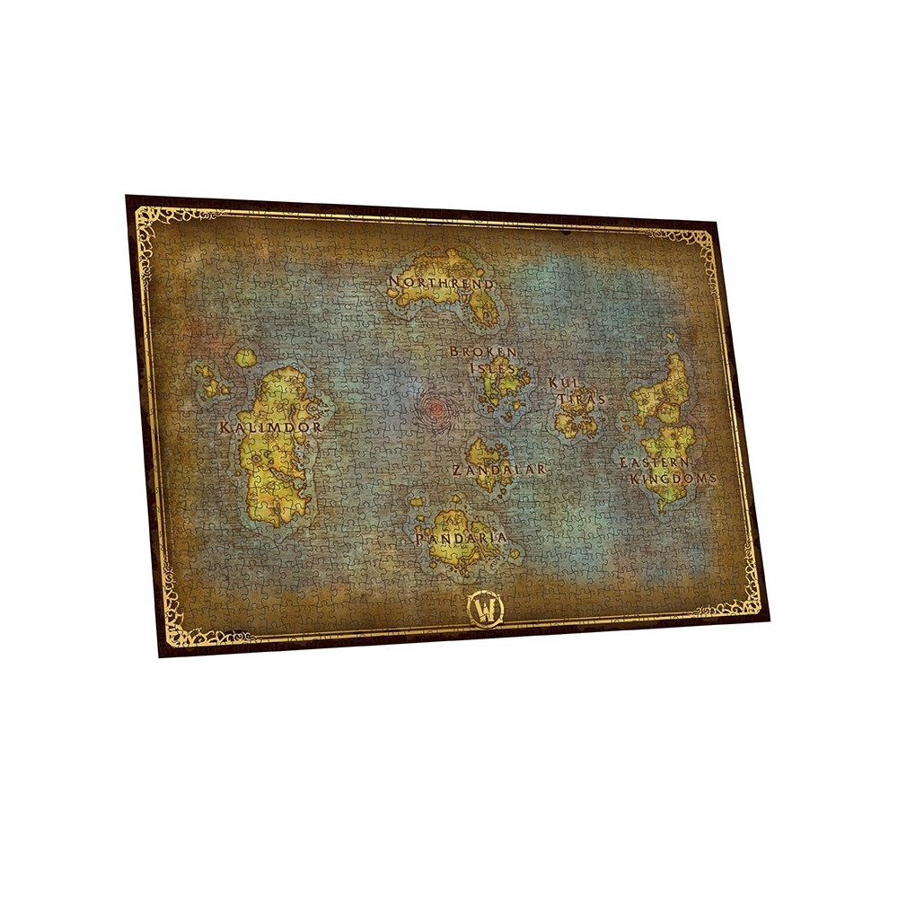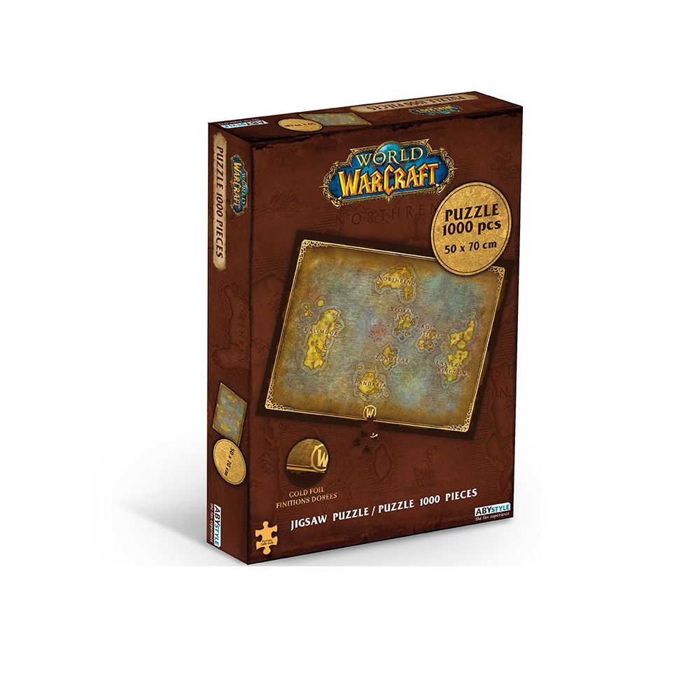 Puzzle s mapou světa Azeroth z Warcraftu – 1000 dílků, zlaté detaily a formát 50 × 70 cm. Ideální výzva i dekorace pro fanoušky WoW.