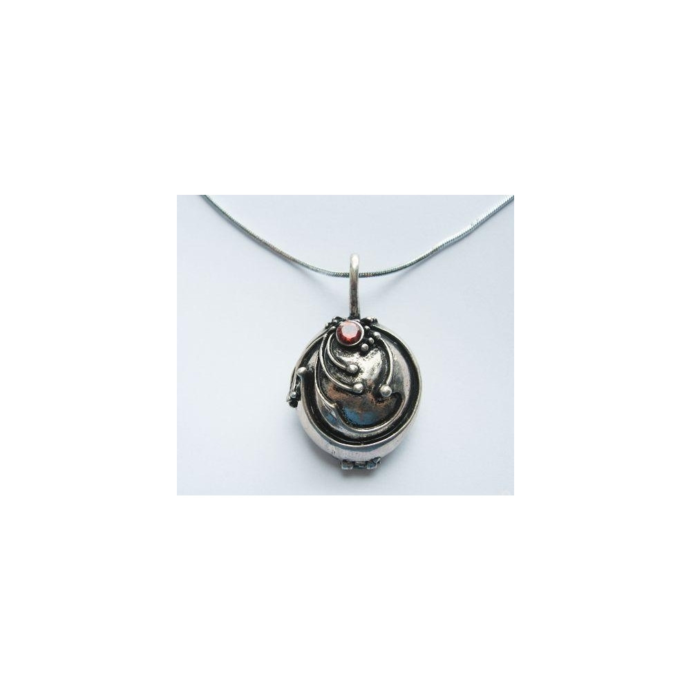 Rozevírací přívěsek se složitým reliéfem a červeným kamenem inspirovaný šperkem z Upířích deníků -