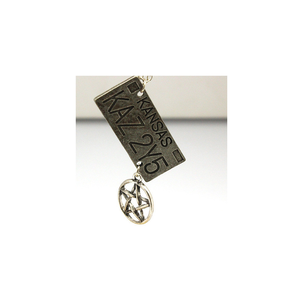 Hlavním motivem přívěsku je SPZ „KAZ 2Y5“ ze státu Kansas – poznávací značka černé Impaly, která se stala třetím hlavním hrdinou celého seriálu. Doplňuje ji klasický pentagram jako ochranný znak proti temným silám. Tento řetízek ze slitiny kovu je ideální pro každodenní nošení nebo jako sběratelský kousek. Díky délce 60 cm pohodlně sedí a vynikne na každém outfitu.