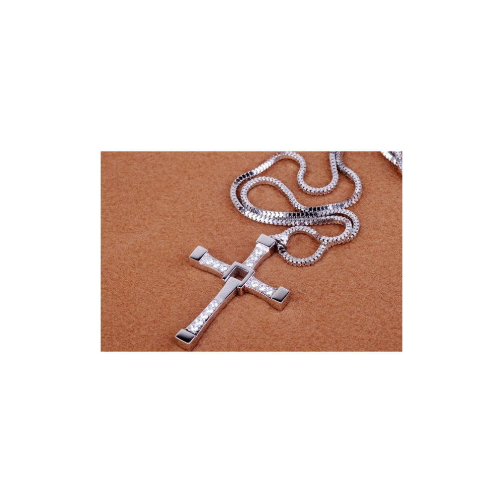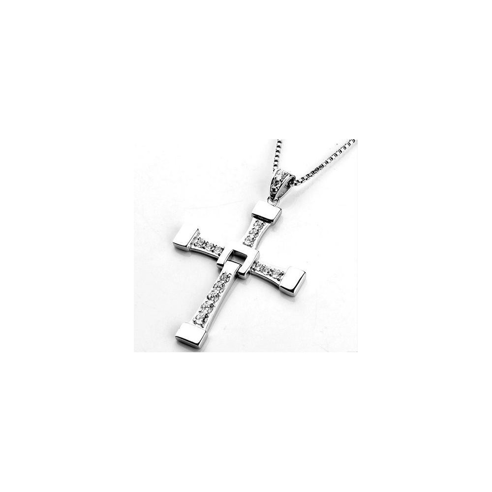 Stříbrný kříž s jemně vsazenými krystalky – replika šperku z filmu Rychle a zběsile -