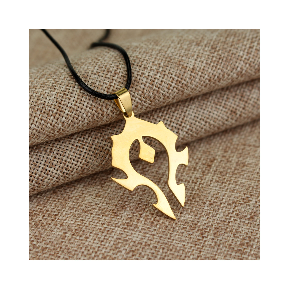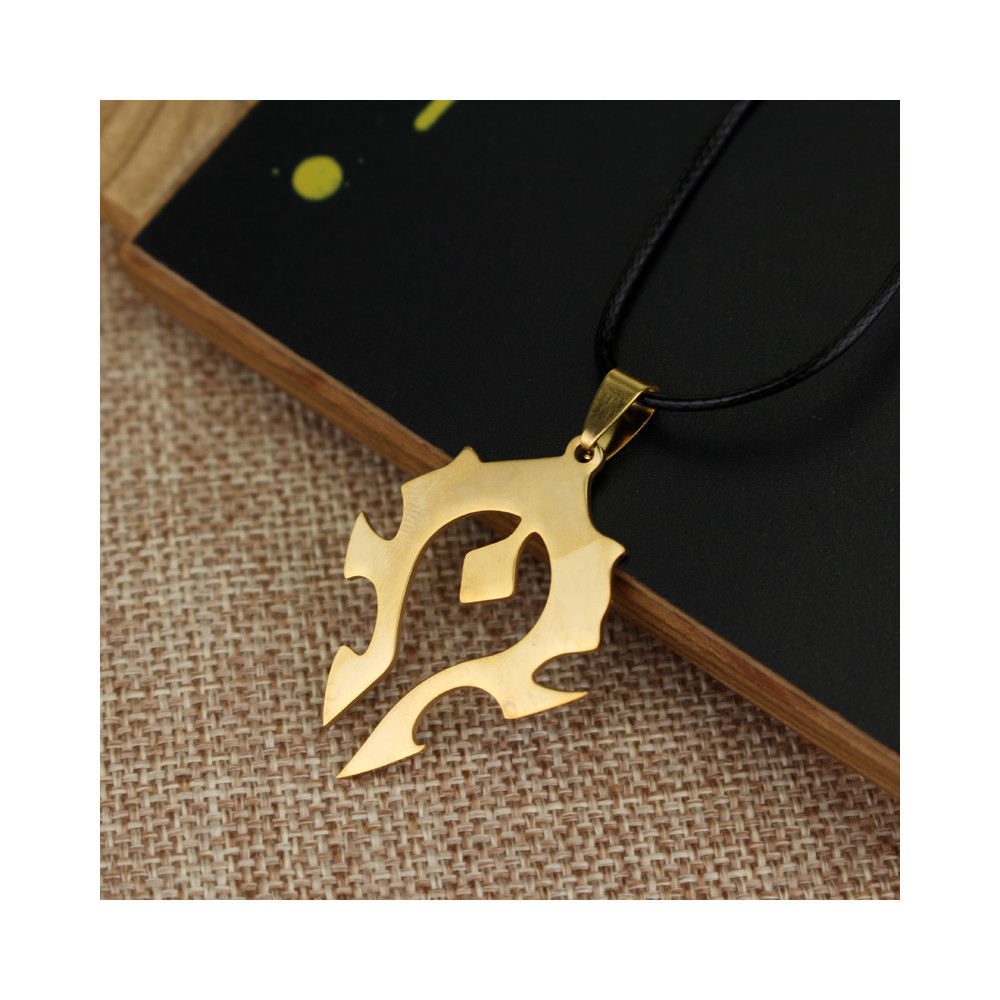 Stylový herní náhrdelník se zlatým logem Hordy z Warcraftu. Vyroben ze slitiny zinku s koženým řemínkem. Ideální dárek pro fanoušky série.