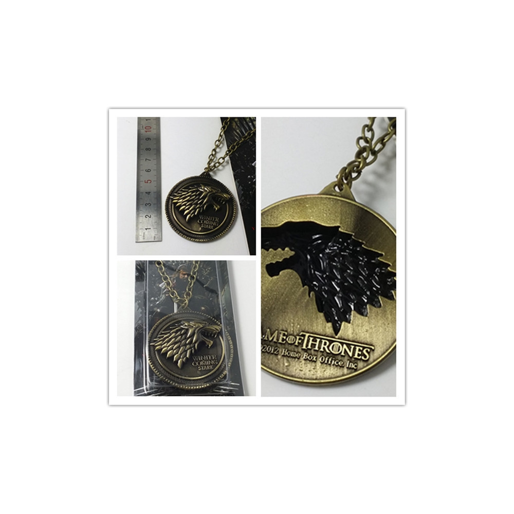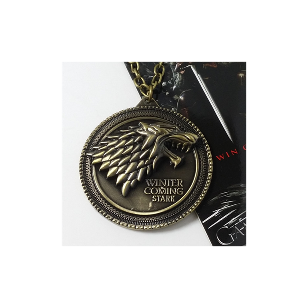 Masivní kruhový přívěsek s trojrozměrným reliéfem zlovlka a nápisem „Winter is Coming – Stark“ je zpracován v tmavě zlatém tónu s černými detaily. Robustní provedení podtrhuje sílu a odolnost, které jsou vlastní právě rodu Stark. Perfektní doplněk pro cosplay, sbírku nebo každodenní nošení.