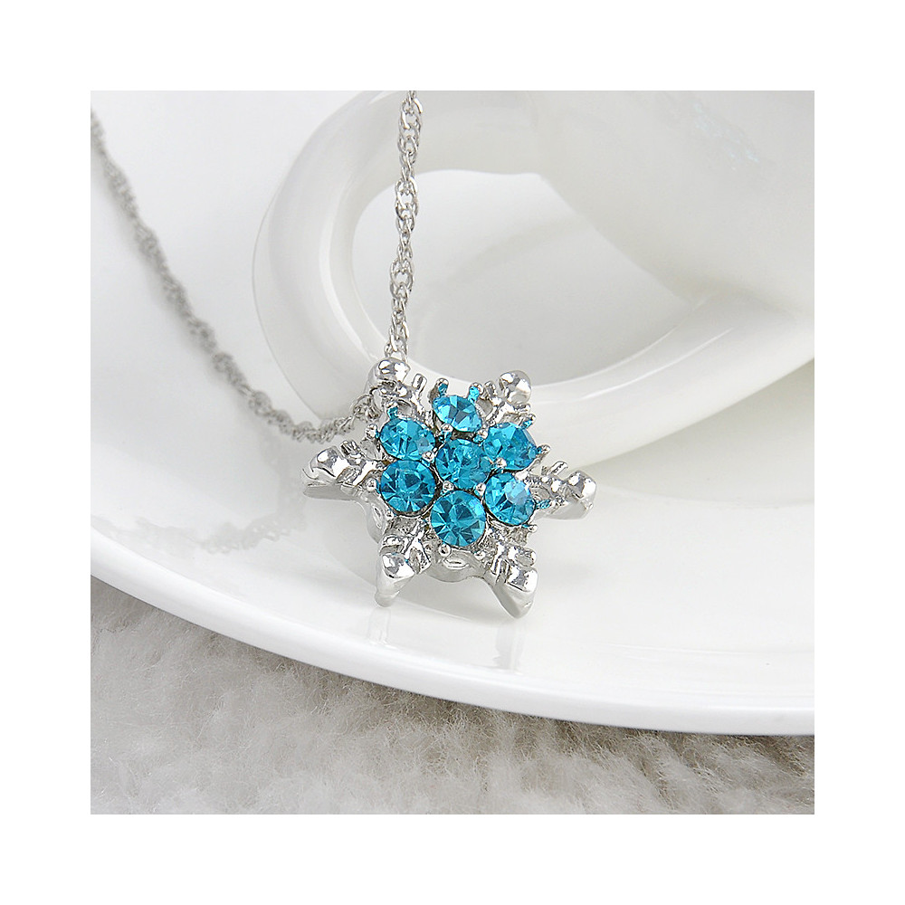 Přeneste se do magického světa zimního kouzla s tímto řetízkem ve tvaru sněhové vločky v odstínu „sky blue“. Zářivé tyrkysové krystaly evokují čistotu ledu a jiskření mrazivého rána, čímž vytvářejí skutečně pohádkový dojem.