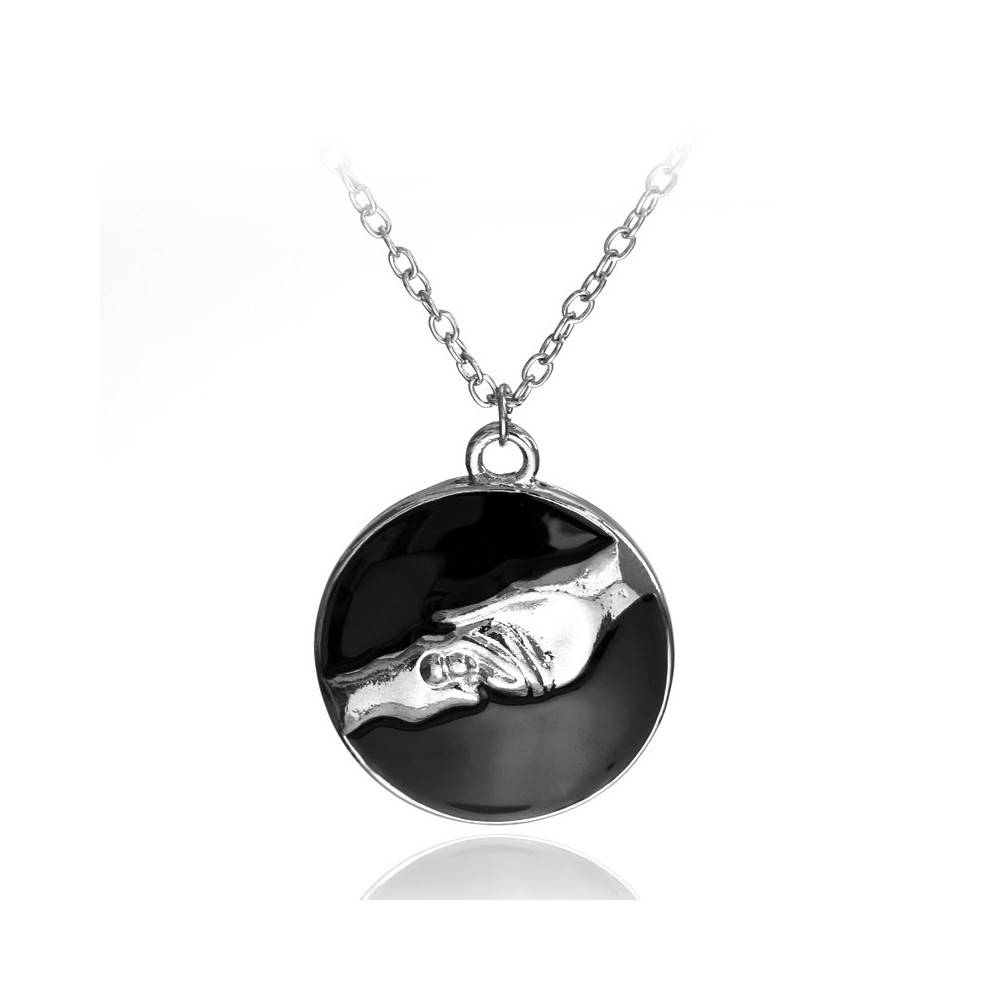 Přívěsek s černým podkladem a motivem podaných rukou symbolizuje frakci Odevzdanost z populární série Divergent. Stříbrné provedení působí decentně, a přesto stylově – ideální pro každodenní nošení i jako výrazná součást tematického outfitu.