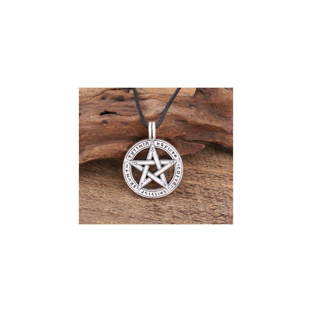 Kulatý amulet s pentagramem a rytými runovými znaky -