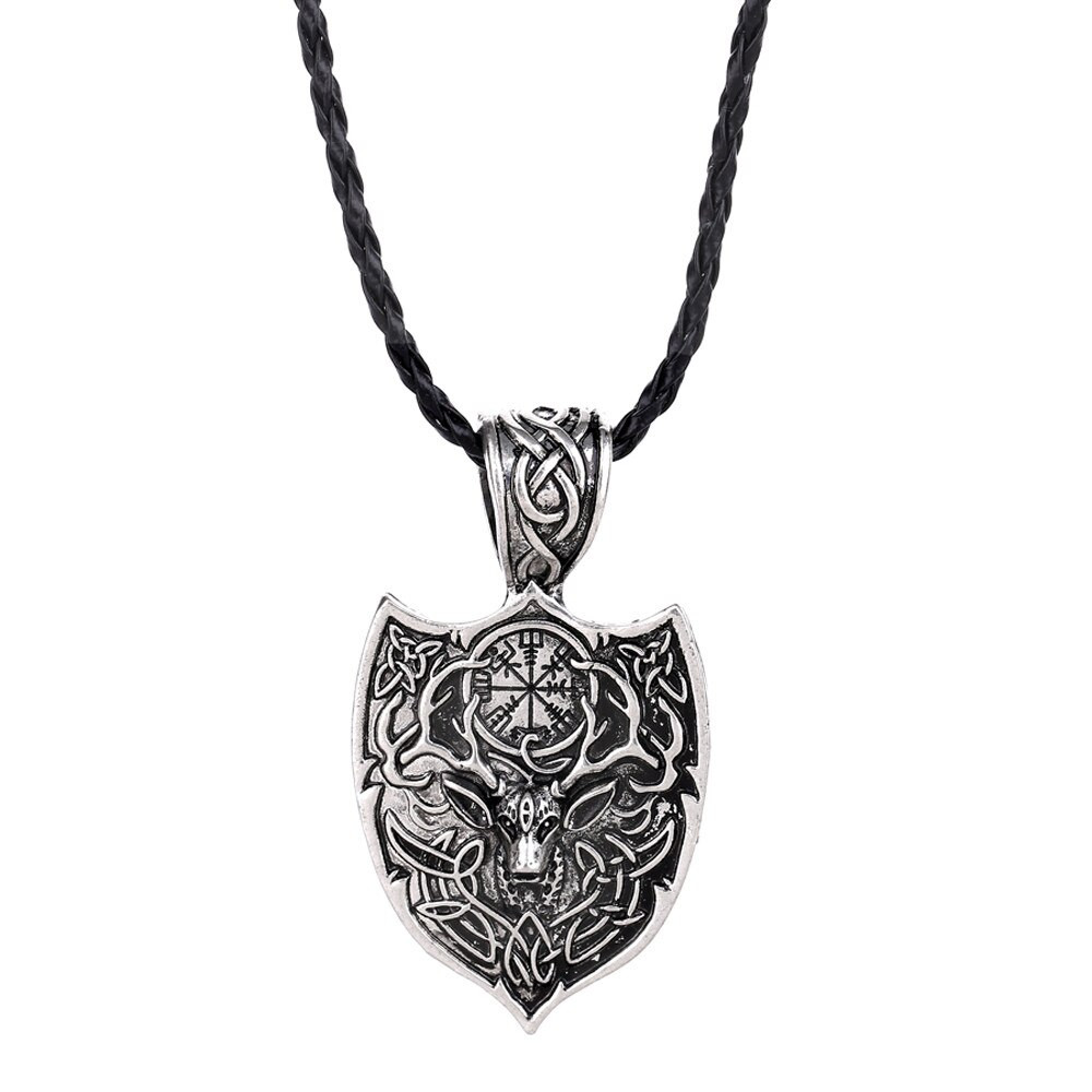Vikingský náhrdelník se symbolem jelena a runovým kompasem – amulet síly, intuice a ochrany.