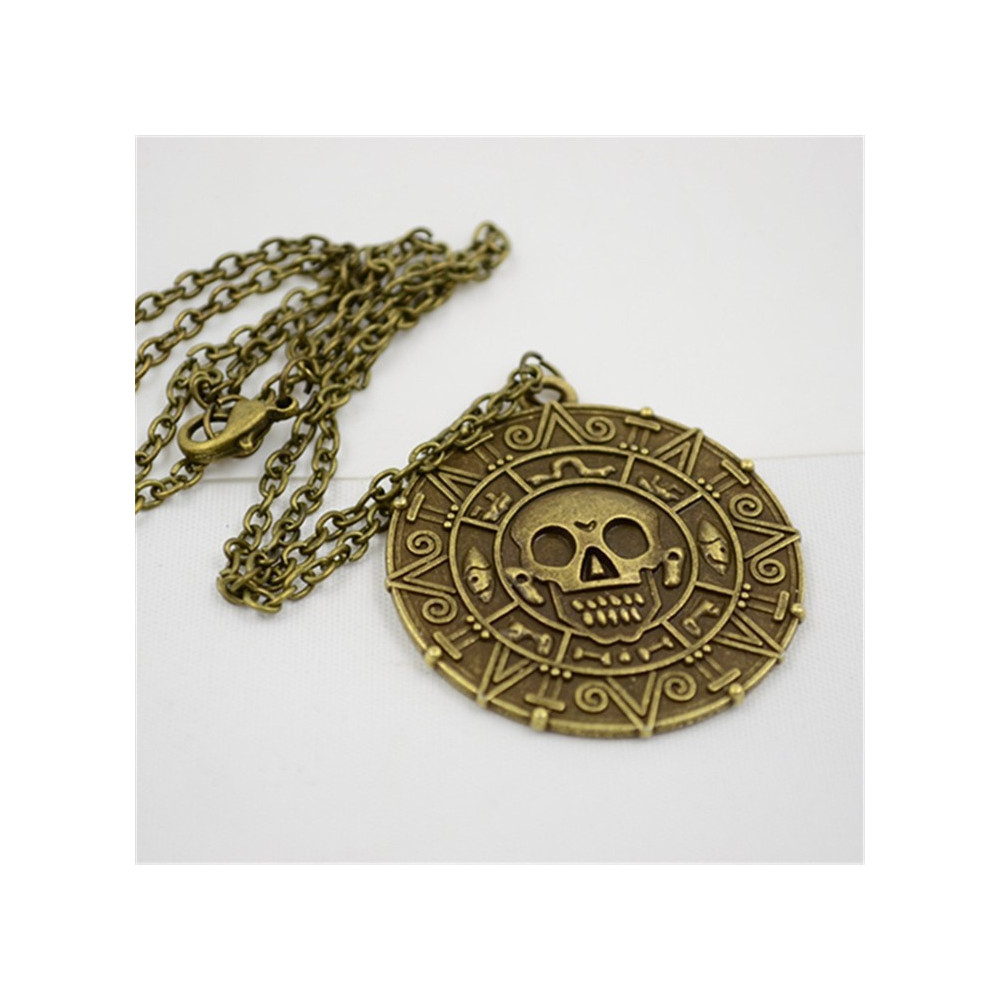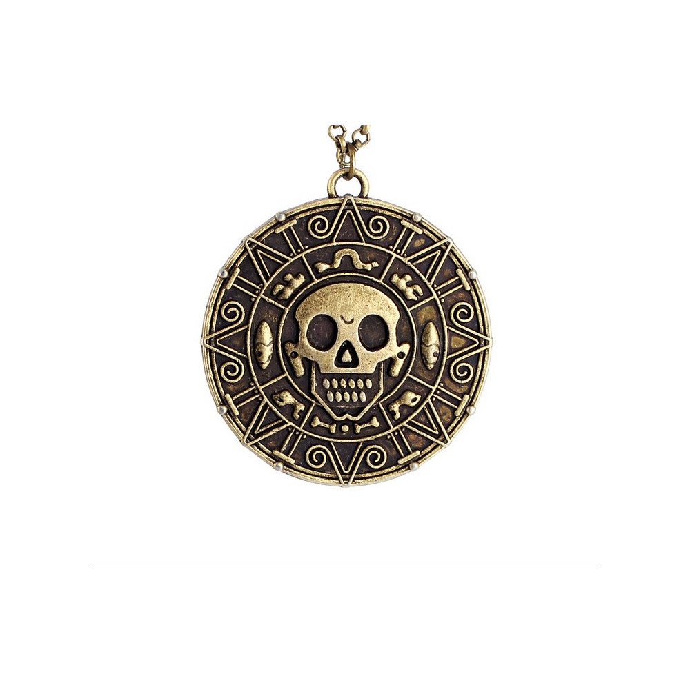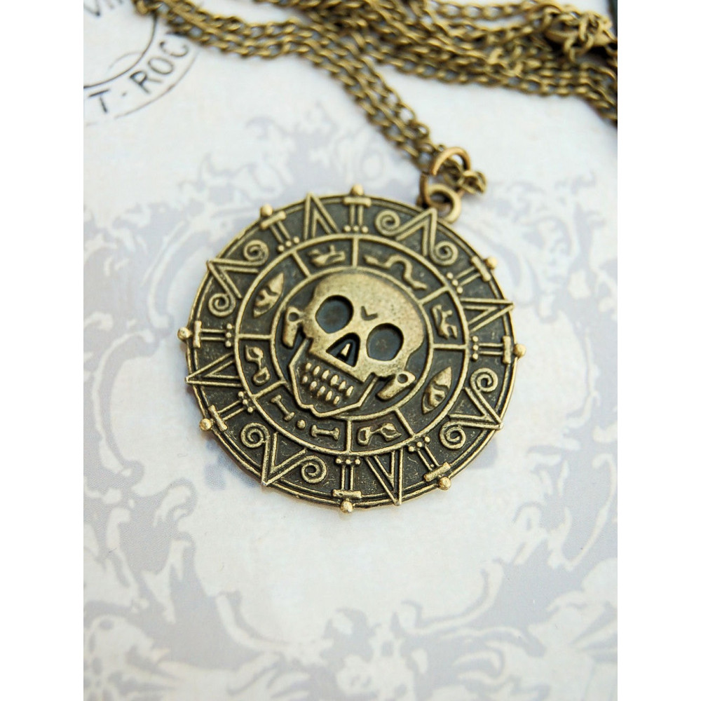 Tento detailní přívěsek ve tvaru aztécké mince znázorňuje slavné zlato z prvního dílu filmové série. Starozlatá povrchová úprava, lebka uprostřed a mystické symboly po obvodu dělají z řetízku výjimečný šperk, který zaujme každého fanouška dobrodružných filmů.