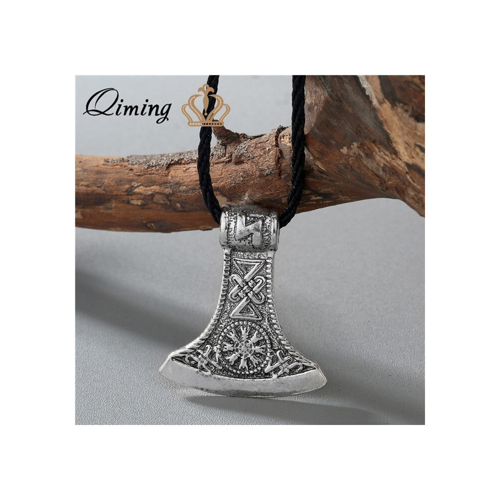 Masivní vikingský přívěsek ve tvaru sekery s mystickými runami a symboly – ideální doplněk pro fanoušky severské mytologie a silného stylu.