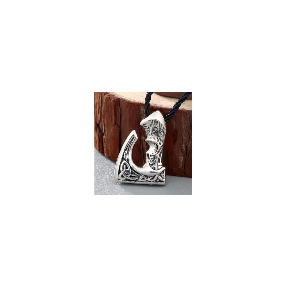 Masivní vikingský přívěsek ve tvaru sekyry s jemnou rytinou draka a keltskými motivy – síla legend ukrytá v amuletu.