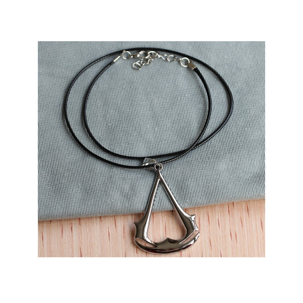 Elegantní přívěsek s precizně tvarovaným logem asasínů visí na černém koženém řemínku, což vytváří kontrastní a výrazný vzhled. Skvělý doplněk pro hráče, cosplayery i fanoušky moderního fantasy světa s historickými prvky.