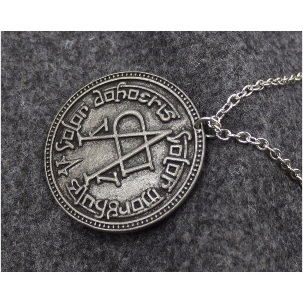 Přívěsek ve tvaru starodávné mince s nápisy ve valyrijštině je dokonalou volbou pro fanoušky Hry o trůny, kteří touží po unikátním a výrazném šperku. Vyroben z kvalitní slitiny zinku a zavěšený na pevném řetízku.
