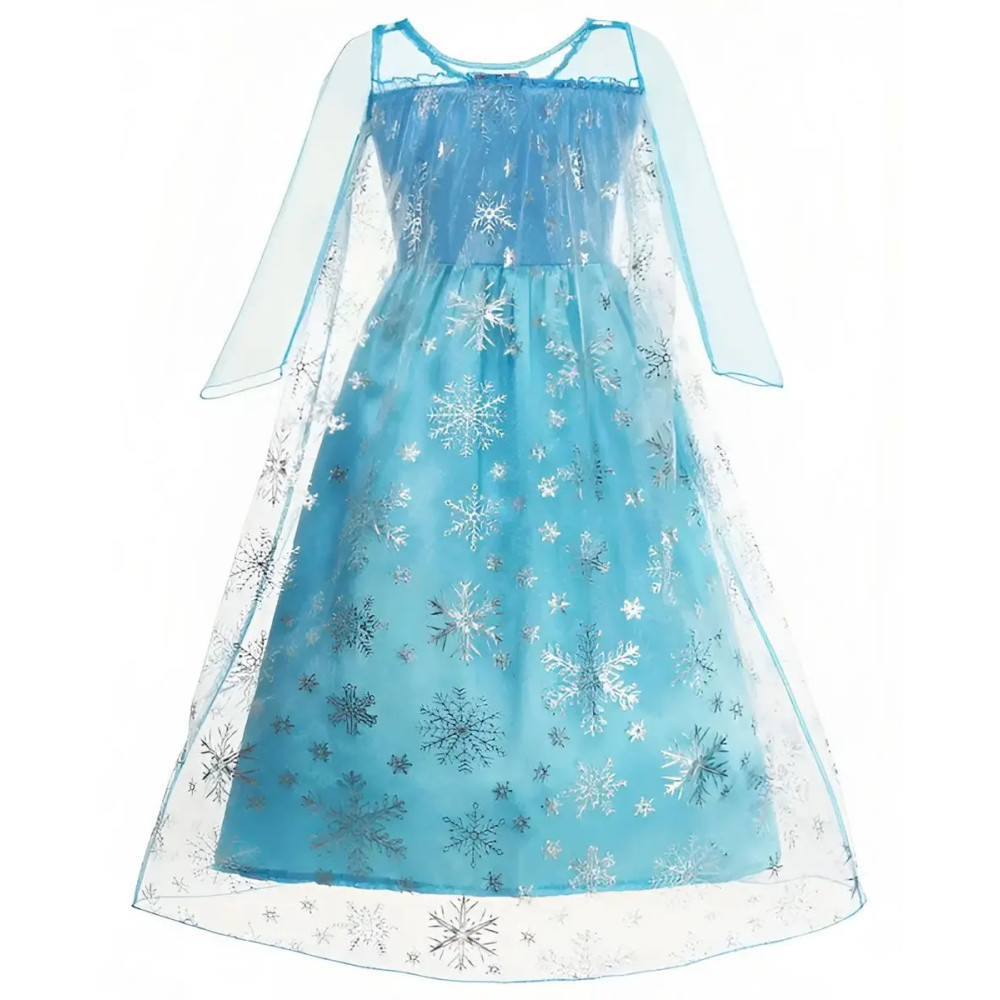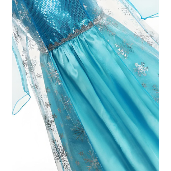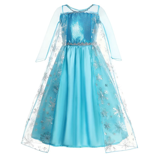 Dětský kostým Ledové království – princezna Elsa je kouzelný převlek pro malé milovnice pohádek. Nádherné modré šaty s dlouhou vlečkou a třpytivými detaily připomínají ikonický vzhled oblíbené ledové královny. Jemné sněhové vzory, lesklé flitry a lehká průsvitná látka dodávají šatům pohádkový vzhled.