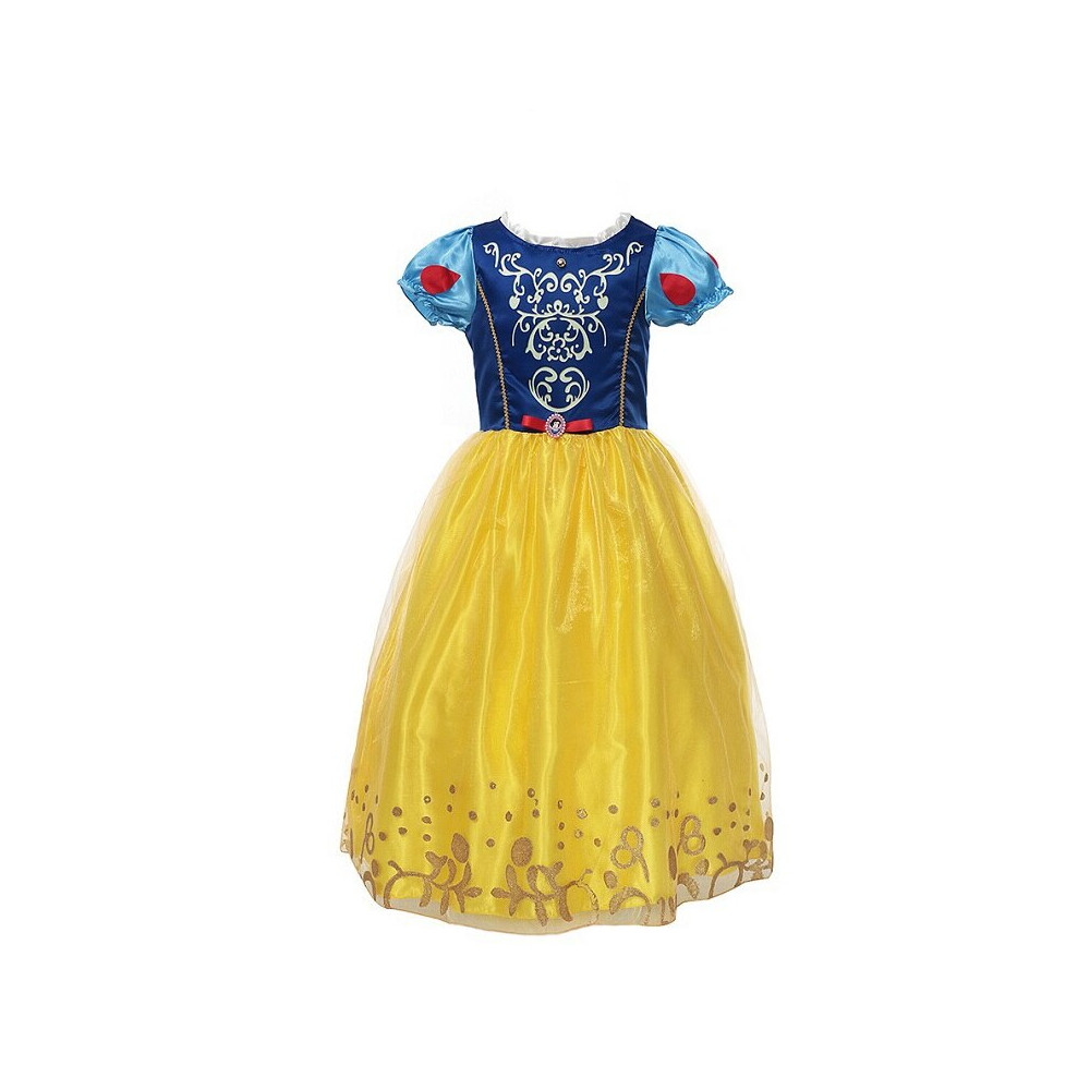 Kostým Sněhurky pro malé princezny! Krásné modro-žluté šaty s elegantními detaily jsou ideální na karnevaly, oslavy i každodenní hraní.