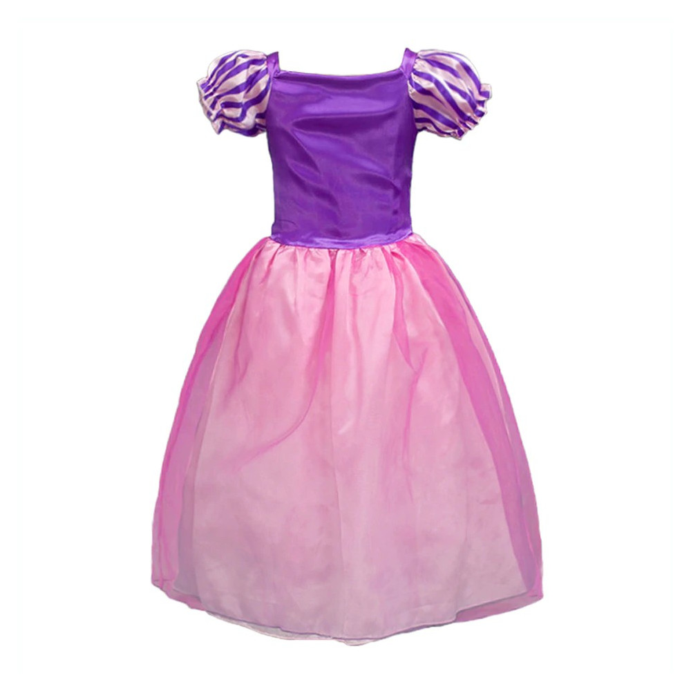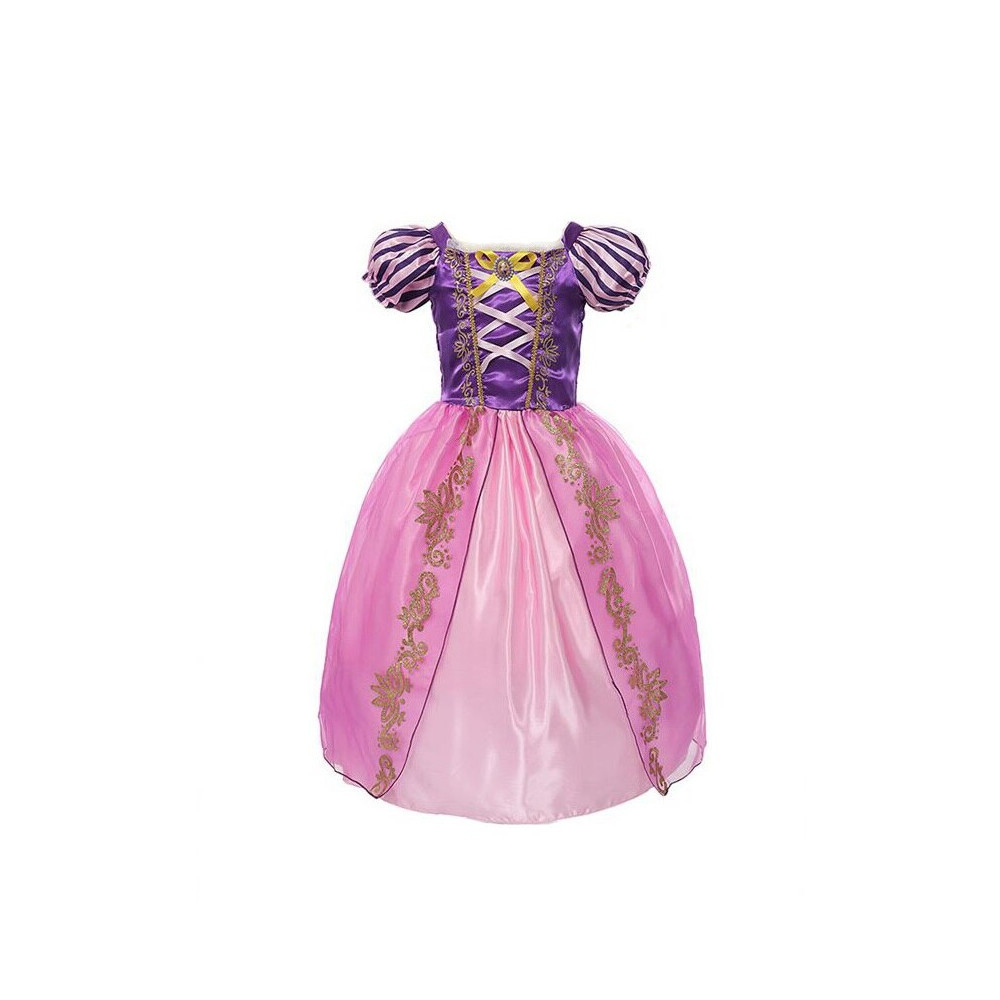 Kouzelný dětský kostým Lociky z pohádky Na vlásku. Krásné fialovo-růžové šaty s třpytkami a zlatými detaily jsou perfektní pro malé princezny!