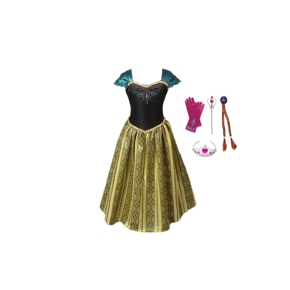 Kostým Anny z Ledového království s doplňky – rukavicemi, korunkou, žezlem a copánky. Pohodlné a nádherné šaty pro malé princezny!