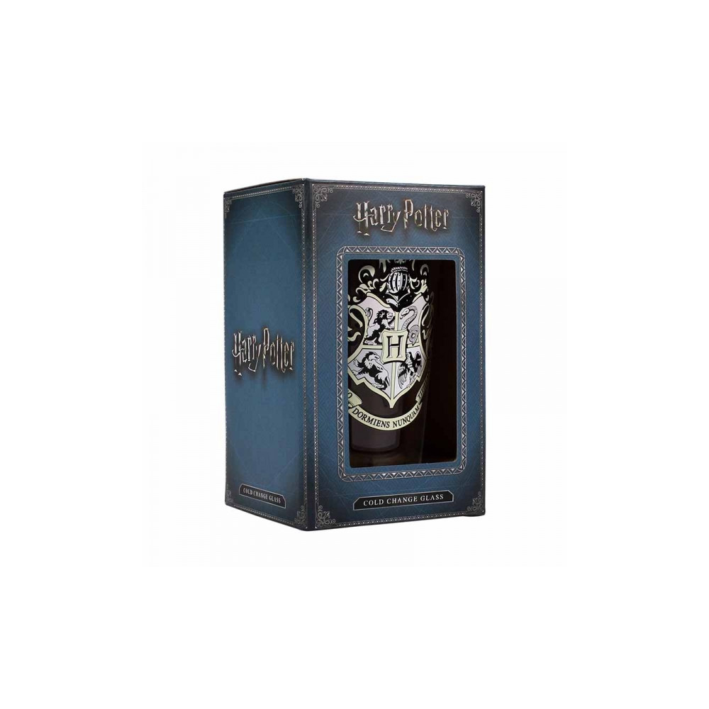 Magická sklenice Harry Potter s erbem Bradavic, který mění barvu při nalití studeného nápoje – ideální pro všechny čaroděje a fanoušky světa J. K. Rowlingové.