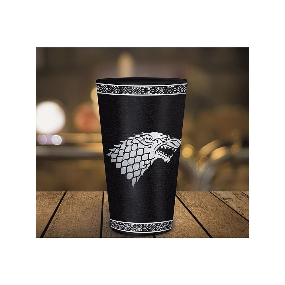 Stylová černá sklenice s erbem rodu Stark z Game of Thrones. Ideální dárek pro fanoušky seriálu a výborný doplněk do každé geekovské domácnosti.