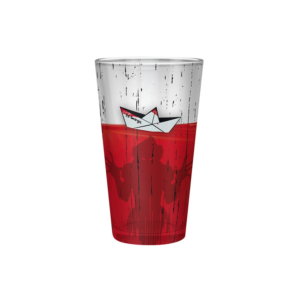 Design spojuje temnou atmosféru Derry s ikonickými prvky – krvavě červenou hladinou, papírovou lodičkou a siluetou klauna, která se skrývá pod povrchem. Vhodná jako sběratelský kousek i stylová sklenice na každodenní použití.