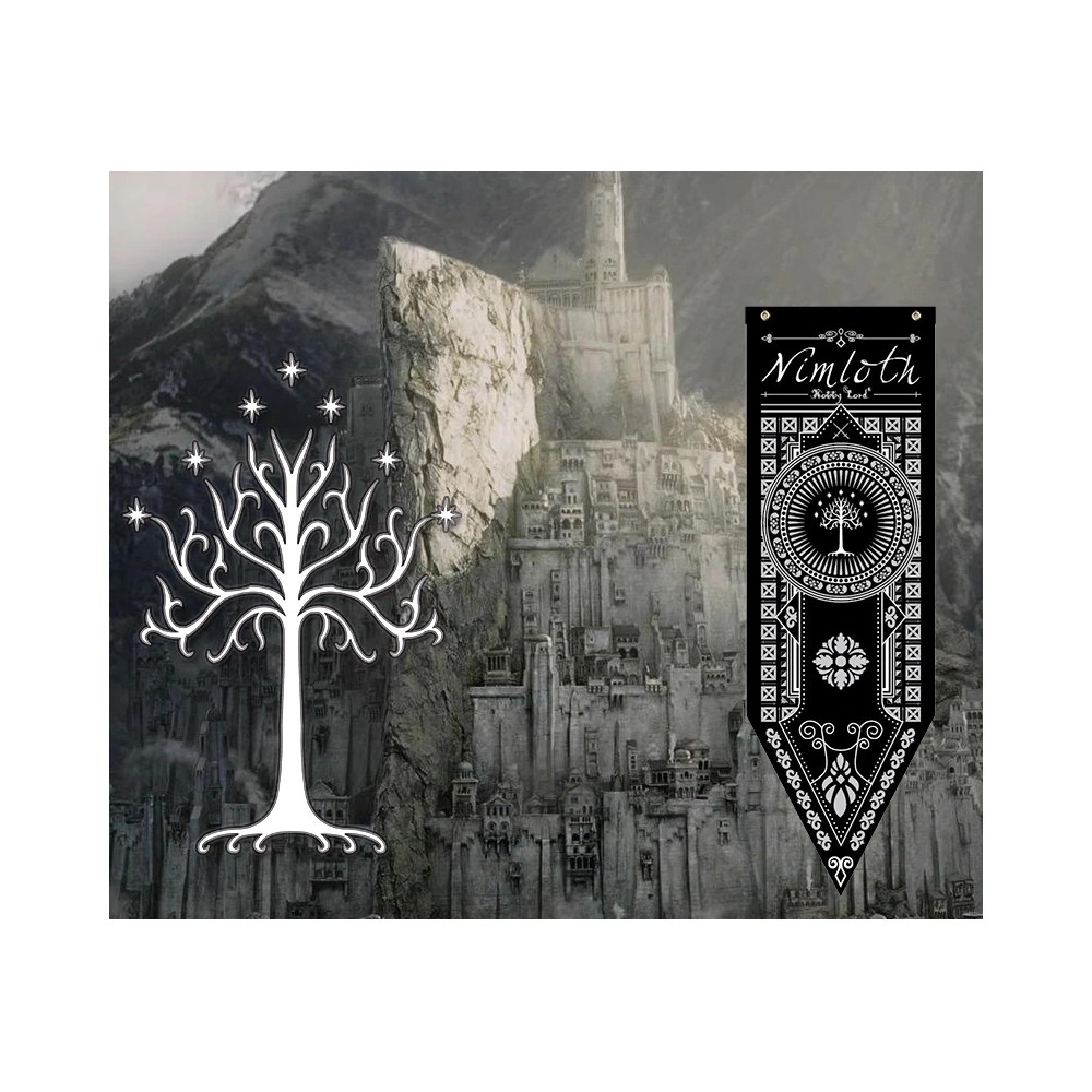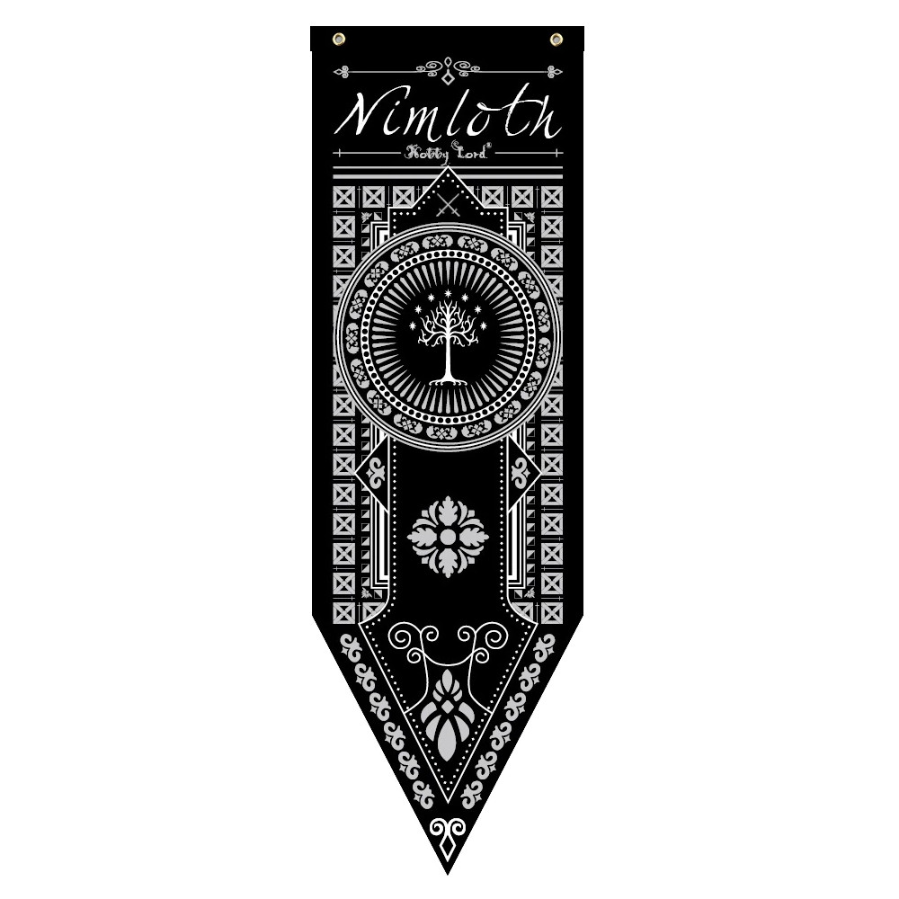 Černobílý design se Stromem Gondoru, ozdobnými ornamenty a nápisem Nimloth působí vznešeně a mysticky. Vlajka dodá vašemu pokoji nebo sbírce fantasy atmosféru královského rodu z Minas Tirith.